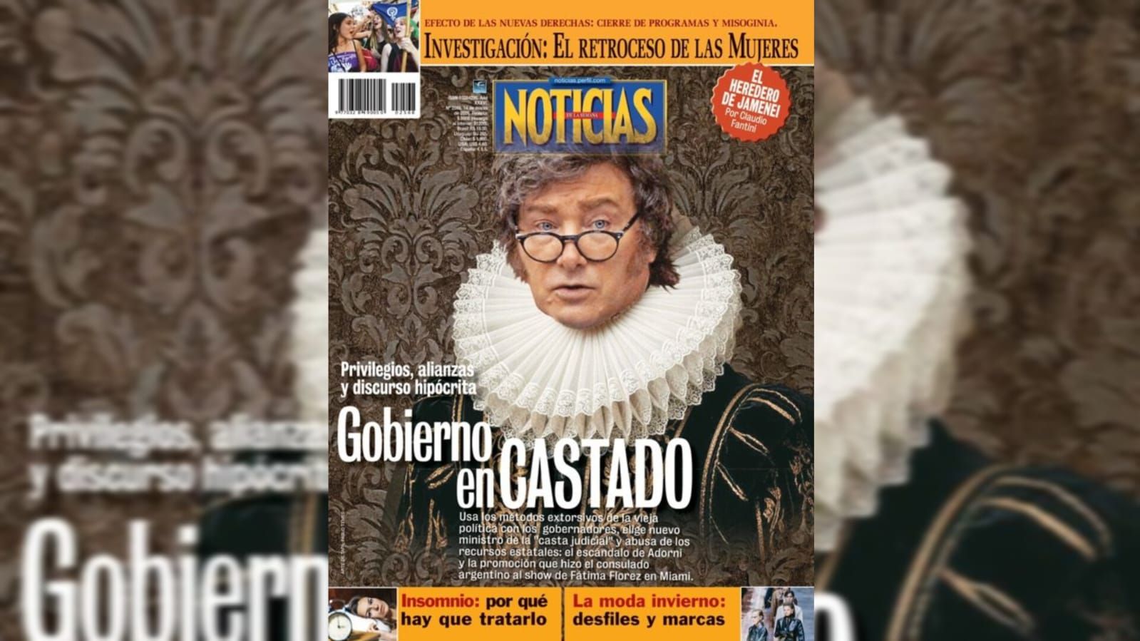 l escándalo del Jefe de Gabinete, Manuel Adorni, quien incluyó a su esposa en la comitiva presidencial que acompañó al presidente Milei a Nueva York, después de haber anunciado con jactancia el fin de ese y otros privilegios de la vieja política, es apenas la expresión más irrefutable de las hipocrecías del discurso oficial. “Gobierno encastado” es el título de tapa de NOTICIAS de esta semana. El mileísmo usa métodos extorsivos con gobernadores para lograr adhesión en el Congreso, elige nuevo ministro de la más pura “casta judicial”, y abusa de los recursos estatales mientras aplica la motosierra sobre otros sectores. El más insólito: la promoción del consulado argentino al show de Fátima Florez en Miami. Mientras se declama austeridad, emergen funcionarios con privilegios y patrimonios que no cierran.